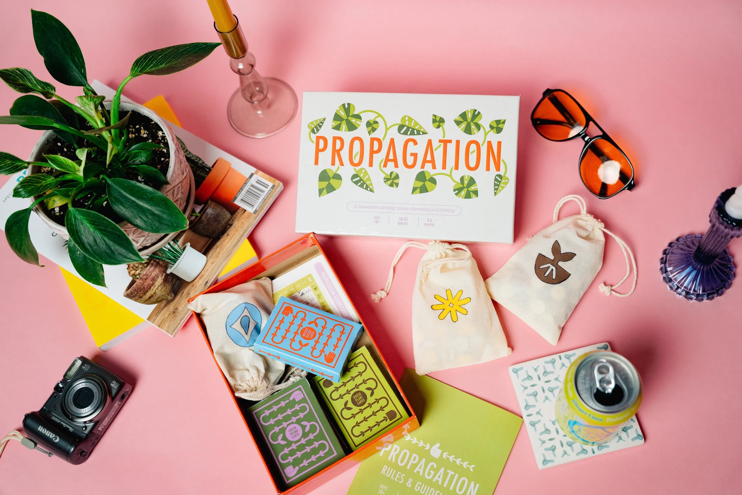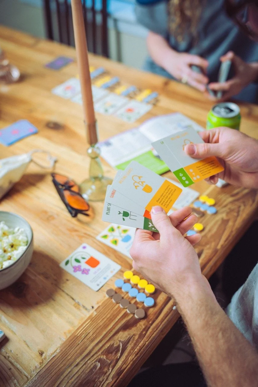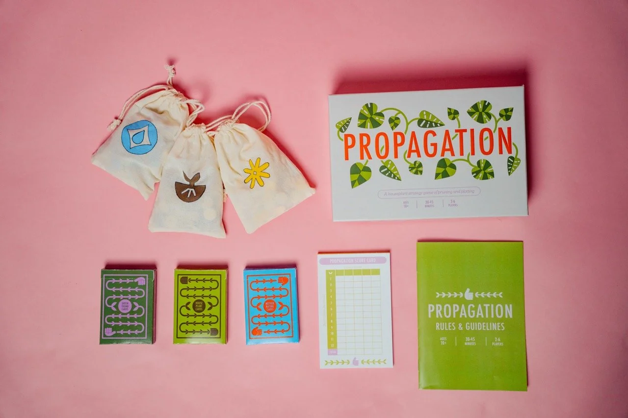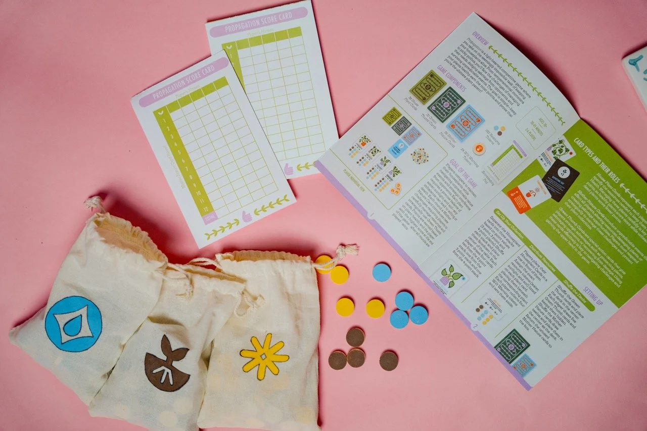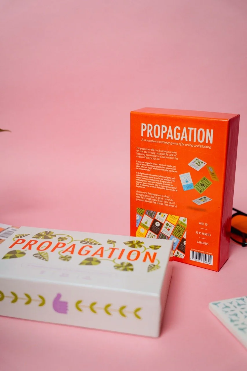 I explored how people interact with games on both a practical and psychological level, looking at elements like decision-making, risk-taking, and how players respond to different challenges. I used the Affective/Mechanic/Narrative framework to help shape the direction of my game, making sure the mechanics, themes, and visuals worked together cohesively. Market research also played an important role. I found that most board game players today are adults aged 18–34, and that social and strategy games are especially popular among this group. This inspired my decision to center Propagation around a relatable theme—plant care—paired with simple strategy and lighthearted competition, all designed with a contemporary, playful aesthetic.